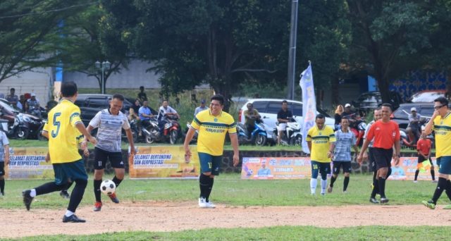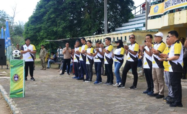 Bintan, Kepri – Bupati Bintan Roby Kurniawan membuka Turnamen Sepak Bola Bupati Cup 2024, Senin (27/05) di Stadion Demang Lebar Daun Kijang Kota. Didampingi Wakil Bupati Bintan, Sekda Bintan dan FKPD Bintan, Roby bahkan kompak bersama seluruhnya turun sebagai satu kesebelasan dalam laga pembuka.