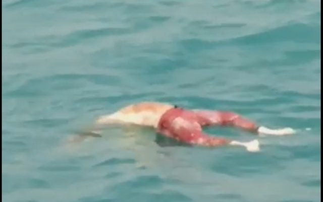 Kondisi mayat lelaki saat ditemukan nelayan di perairan karas, Kepri, Minggu 01 Oktober 2023 (F. Kiriman PLP Tanjung Uban)