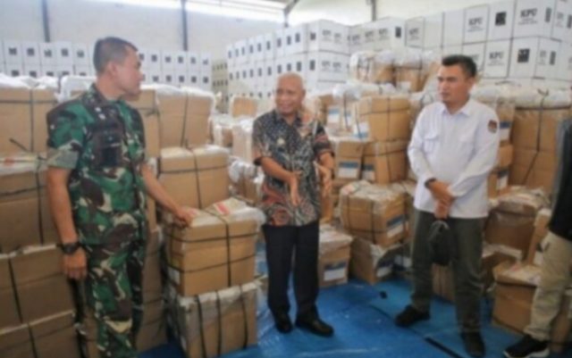 Asahan, Sumut – Bupati Asahan H. Surya, BSc bersama dengan Forkopimda Kabupaten Asahan melaksanakan peninjauan di Gudang Logistik Pemilu KPU Kabupaten Asahan di Jalan Sisingamagaraja Kelurahan Sendang Sari Kecamatan Kota Kisaran Barat, Kamis (11/01/2024).