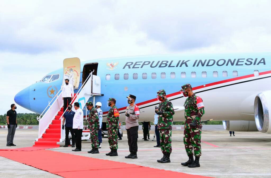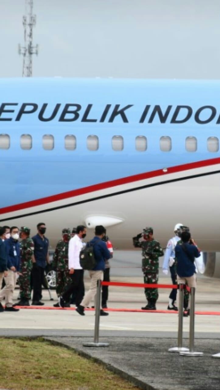 Presiden RI ke Tanjungpinang menggunakan pesawat Kepresidenan RI Boing 737 A-001 bersama Menteri Kesehatan, Panglima TNI, Kapolri dan rombongan lainnya dimana sebelumnya dari Kepala Negara selesai Kunungan Kerja (Kunker) di Provinsi Riau.