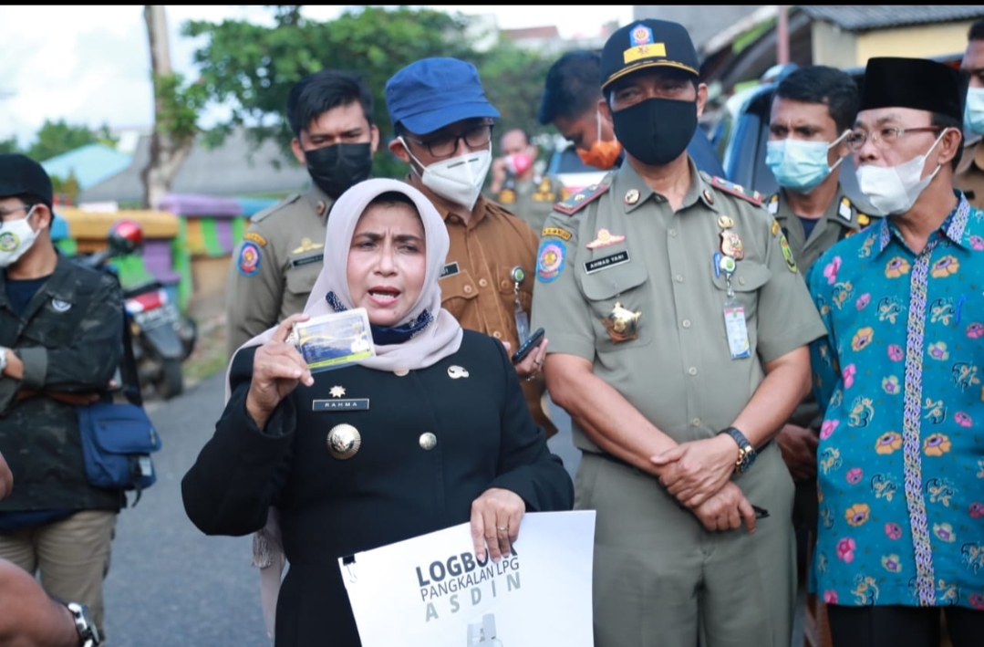 Walikota Tanjungpinang Hj. Rahma S.IP bersama rombongan saat menyerahkan kartu kendali gas 3 Kg( foto Prokopim Setdako Tanjungpinang)