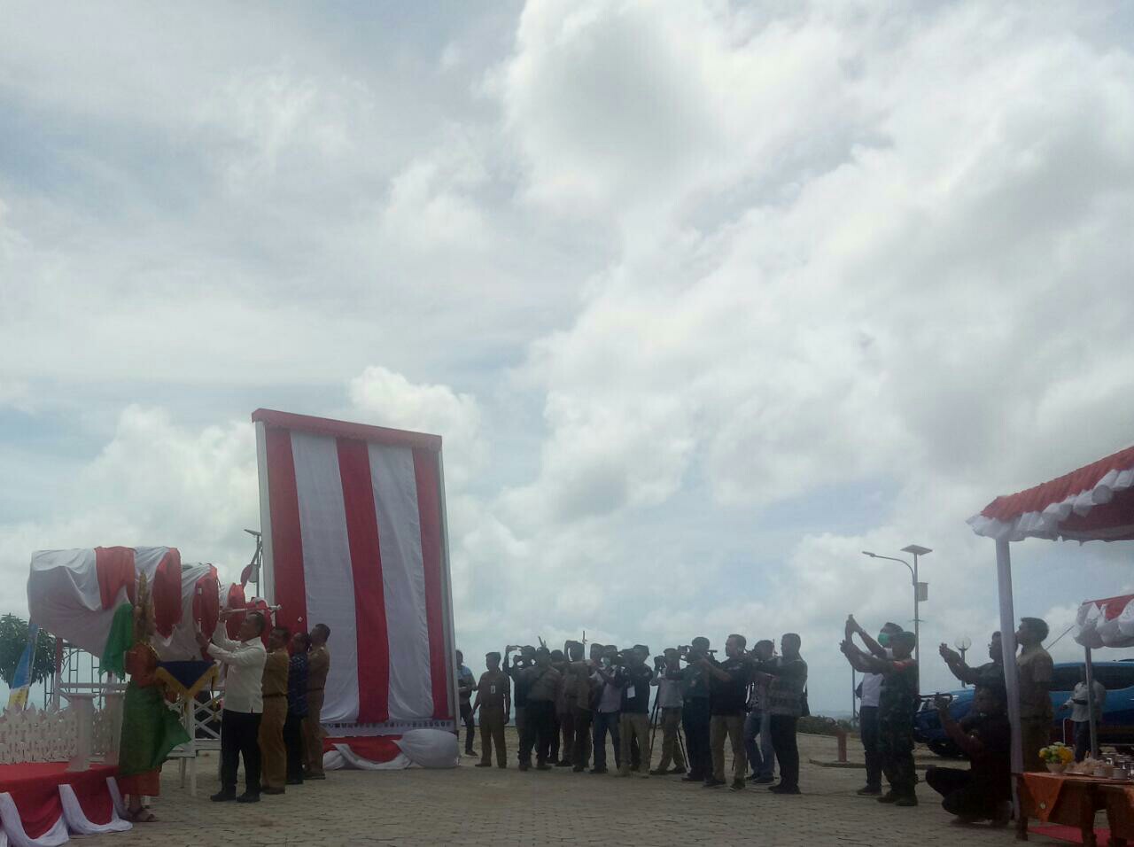 Bupati KKA dalam sambutannya mengatakan ” Selamat Datang dan Terimakasih kepada Menteri Koordinator Bidang Politik, Hukum, dan Keamanan (Menkopolhukam) diwakilkan oleh Deputi IV Pertahanan Negara, Menteri Dalam Negeri diwakilkan oleh Plt. Sekretaris Badan Nasional Pengelola Perbatasan (BNPP) , Rombongan Polhukam, Rombongan Badan Nasional Pengelola Perbatasan (BNPP), Rombongan Kemendagri, Rombongan Kemenkes, Rombongan KKP, Rombongan Kemenag, Rombongan Telkom, Rombongan Kementerin PUPR, Rombongan Kemenhub, Rombongan ESDM, dan Wartawan.