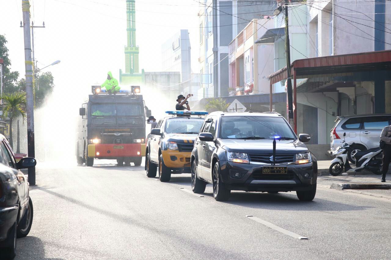Gunakan Mobil Water Canon,4800 Liter Semprotkan Desinfektan di Jalur Protokol Karimun