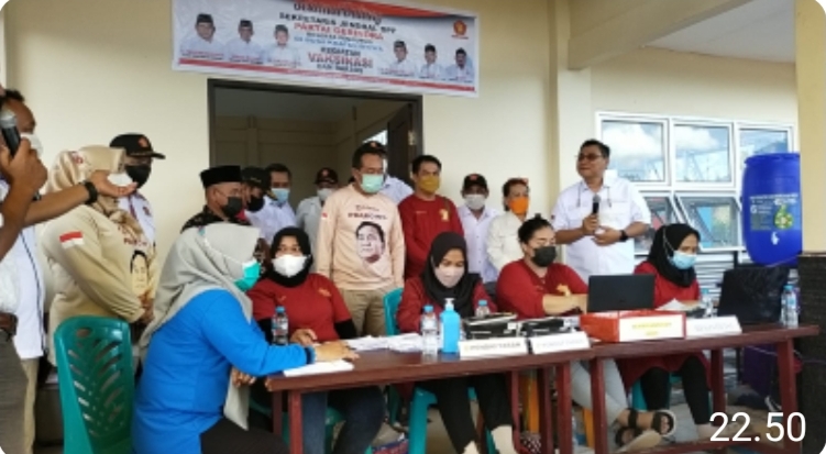 Dewan Pimpinan Daerah (DPD) Partai Gerindra berserta Dewan Pimpinan Cabang (DPC) Gerindra Kubu Raya gelar vaksinasi dan bansos di gedung Jalan Raya, Desa Sungai Kakap, Kecamatan Sungai Kakap, Kabupaten Kubu Raya, Kalbar, pada Sabtu (06/11/2021) pagi.