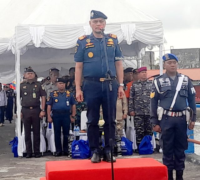 Direktur Kesatuan Penjagaan Laut dan Pantai (KPLP), Jon Kenedi bertindak sebagai inspektur upacara, Jum’at 08 Maret 2024 (F. Patar Sianipar)