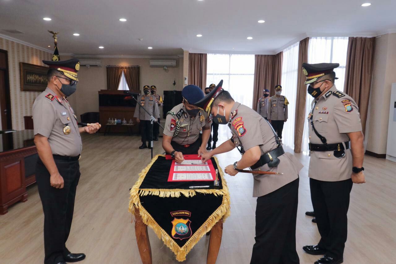 Serah terima jabatan Kapolres Karimun ini, dilaksanakan di Mapolda Kepri dipimpin langsung Kapoda Kepri, Irjen Pol.Drs Aris Budiman.M.Si dihadiri Wakapolda Kepri beserta PJu Polda Kepri, Senin (18/5-2020).