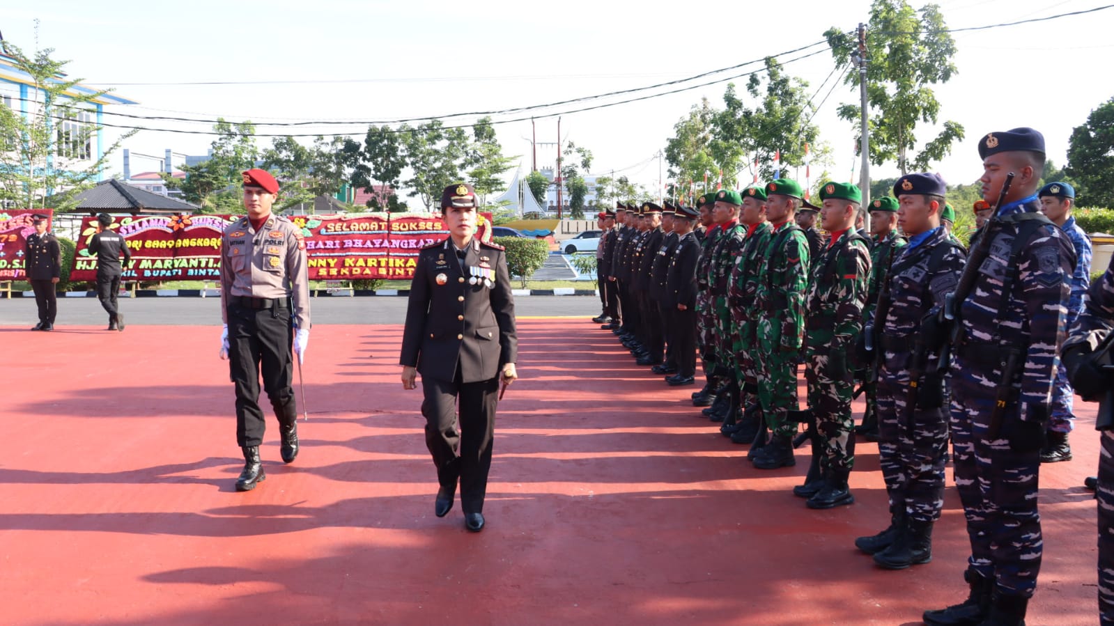 Kapolres Bintan AKBP Yunita Stevani, S.I.K., M.Si., saat memeriksa barisan (F_Humas Polres Bintan)