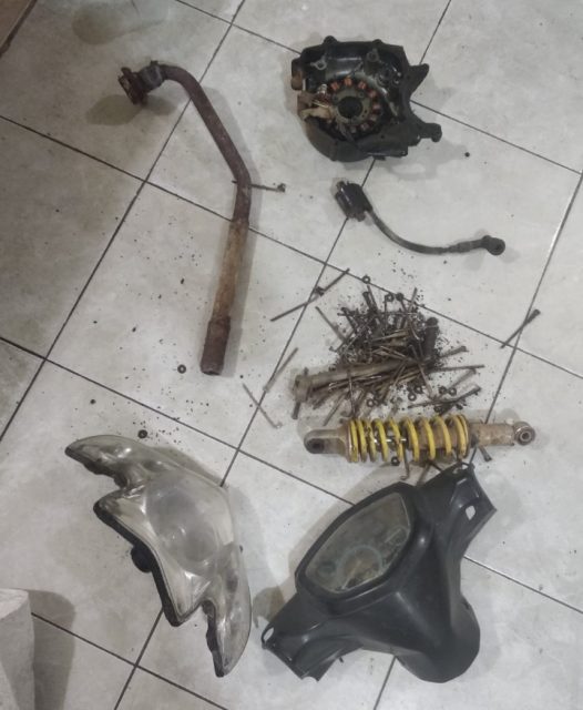 Bahagian-bahagian sepeda motor yang dicuri, dan sudah dipreteli pelaku untuk dijual.