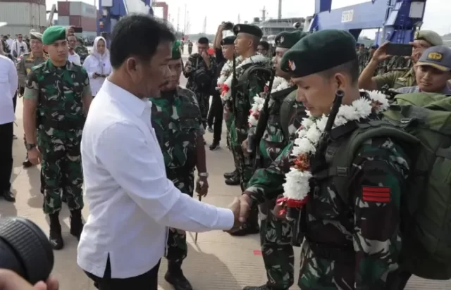 Batam, Silabusnews.com – Wali Kota Batam, Muhammad Rudi bersama Forkopimda, turut menyambut kedatangan 400 personel Yonif Raider Khusus 136/TS di Pelabuhan Batuampar.
