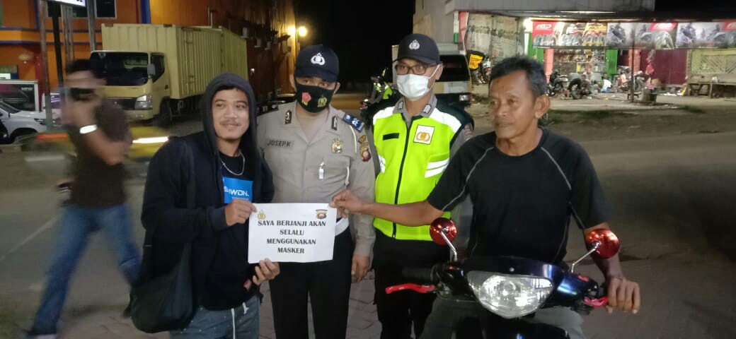 ” Kami dari Polsek dengan 9(sembilan) personil dibantu 2(dua) personil Koramil, dilaksanakan dengan humanis dapat berjalan dengan lancar dan kondusif sehingga masyarakat mulai memahami tujuan menggunakan masker,”katanya.