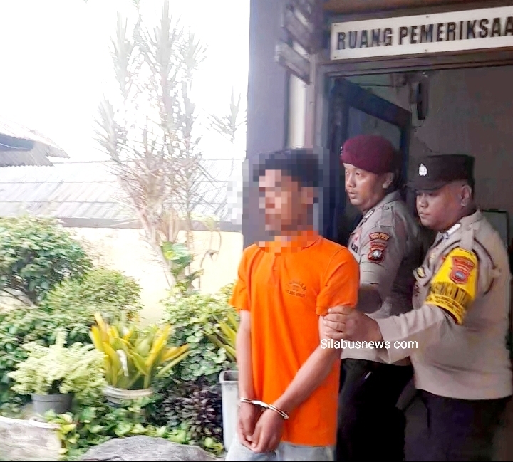 J bin I pelaku pencurian motor saat digiring petugas dari ruangan pemeriksaan, Senin 18/11/1024 (Foto: Patar Sianipar)