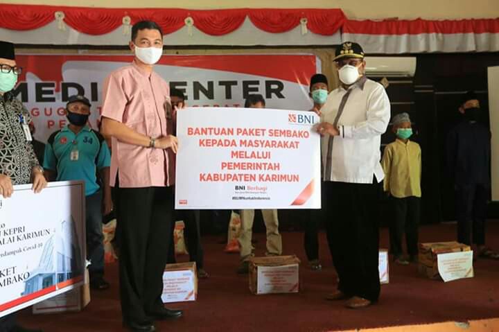 Kepala Cabang BNI 46 Tanjungbalai Karimun, Risnaldi mengatakan, BNI 46 cabang Tanjungbalai Karimun, peduli Corona Virus atau Covid-19 dengan menyerahkan bantuan paket sembako Ramadan 1441 H kepada masyarakat melalui pemerintah kabupaten Karimun