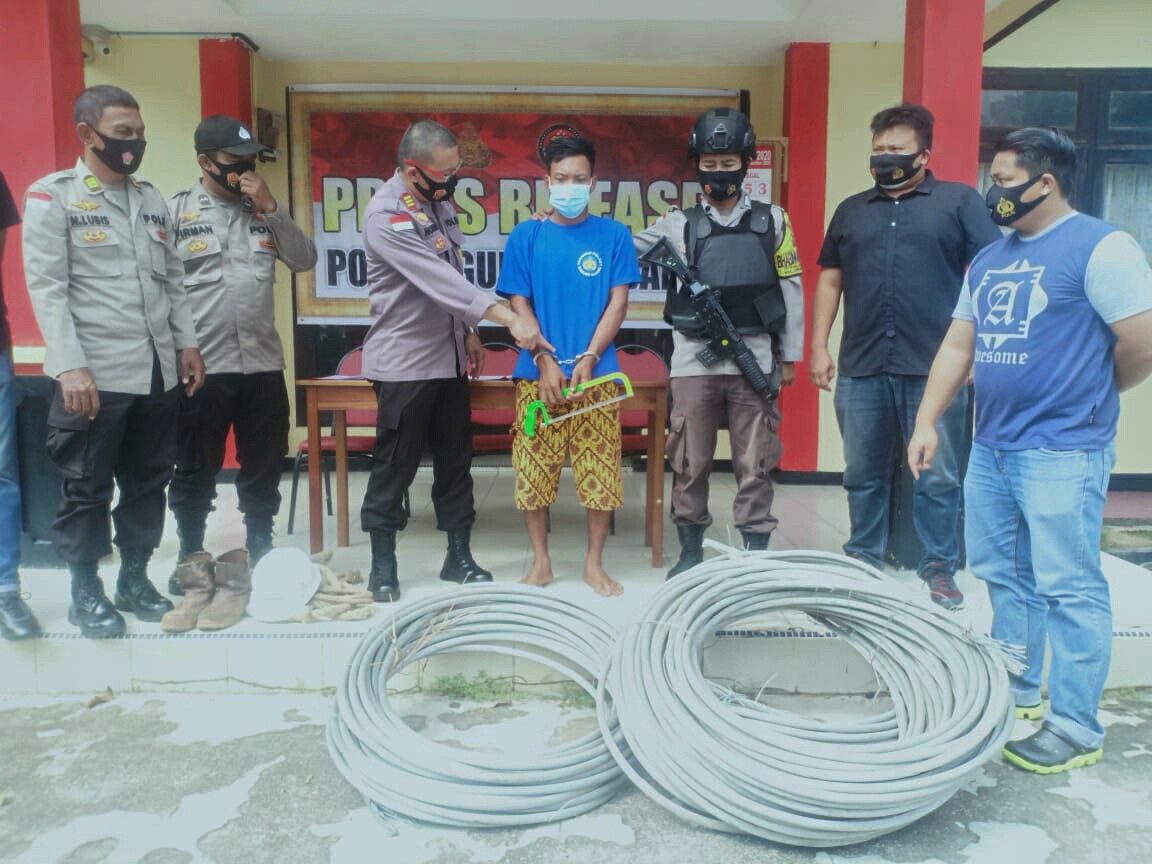 Silabusnews.com, Bintan — Unit Reskrim Polsek Gunung Kijang berhasil meringkus YP dan SS , warga Desa Toapaya Selatan Kabupaten Bintan pelaku pencurian kabel PLN di area tiang listrik Km. 18 Kelurahaan Toapaya Asri, Sabtu pagi (17/10/20).