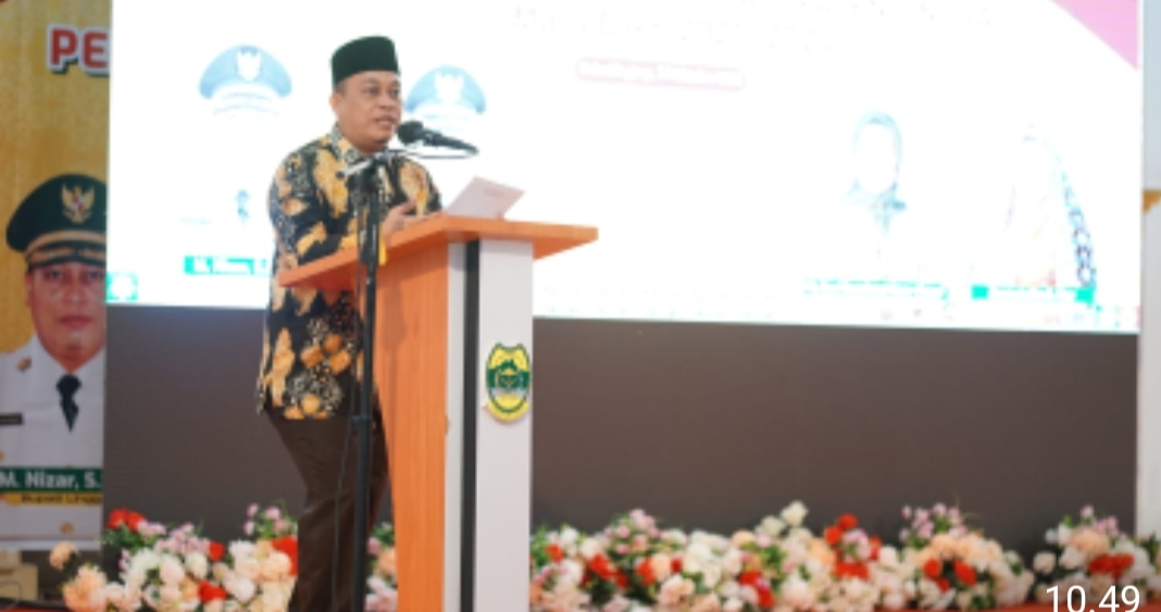Bupati Lingga, Muhammad Nizar saat menyampaikan kata sambutan di Gedung Nasional, Dabosingkep, foto Humas Penkan Lingga.