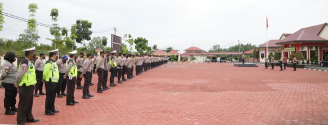 Personil Polres Bintan saat Melaksanakan Apel Kesiapan Pengamanan Sholat Idul Fitri 1442H dan Kebaktian Kenaikan Isa Almasi, foto Humas Polres Bintan