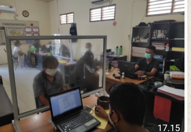 Tersangka Tj (36) saat di periksa di ruangan satreskrim Polsek Bintan Utara” Kamis 25/11/21/ foto dok Polres Bintan