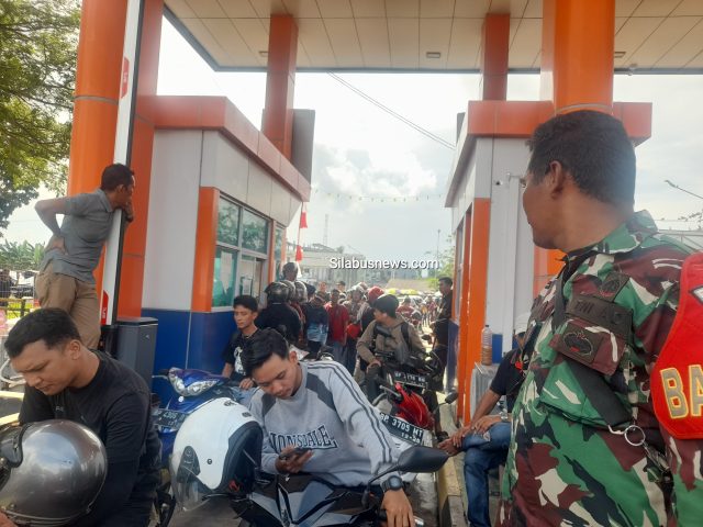 Antrian calon penumpang saat pembelian tiket RORO, tampak diawasi BABINSA, S. Sembiring, Minggu sore 14/04/2024 (Foto Patar Sianipar)