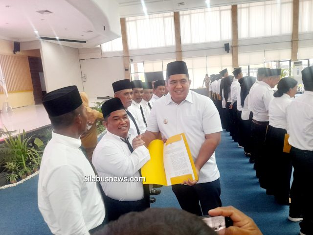Bupati Bintan Robi Kurniawan S.P.W.K., saat menyerahkan SK pengukuhan Badan Permusyawaratan Desa (BPD) se Kabupaten Bintan tahun 2024, Senin 09/09/2024 di Aula Pemkab Bintan (Foto: Patar Sianipar)