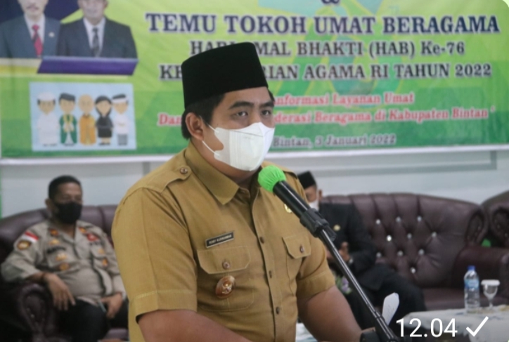 Hal itu disampaikan Plt. Bupati Bintan Roby Kurniawan saat menghadiri Tasyakuran dan Temu Tokoh Umat Beragama dalam rangka Hari Amal Bhakti Ke-76, Senin (03/01) di Aula Kantor Kementerian Agama Kabupaten Bintan.