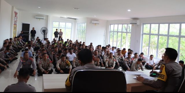 Kapolres Bintan AKBP Riky Iswoyo, pengarahan persiapan Rencana Pengamanan Event Bintan Triathlon 2023. F. Alson.