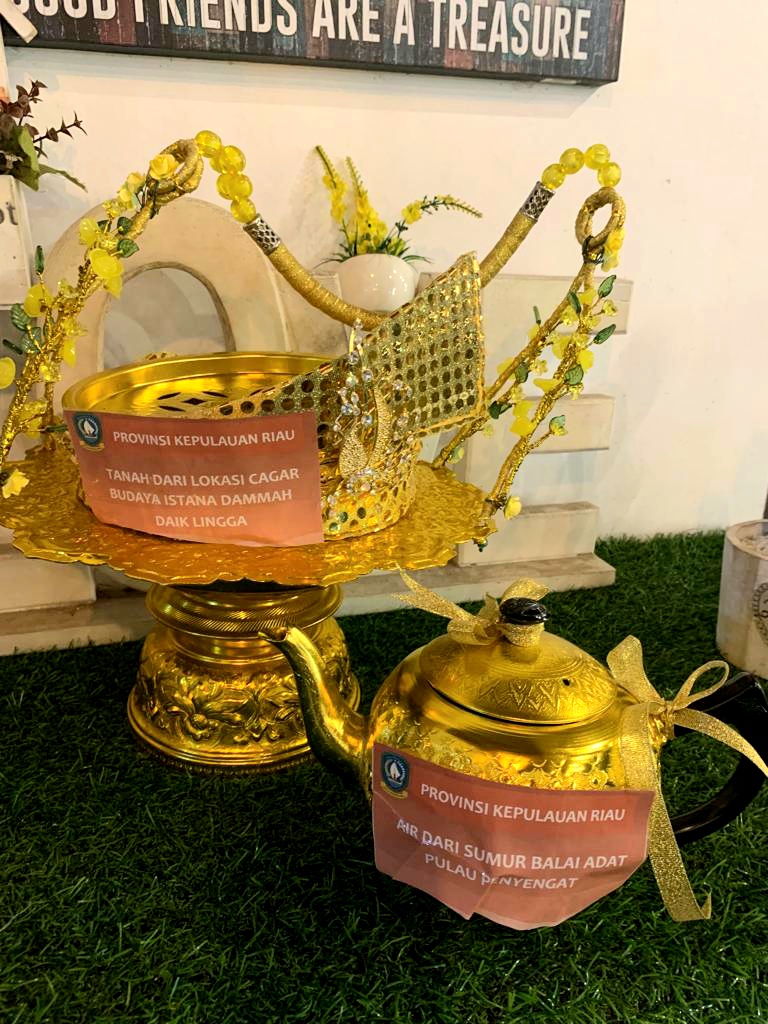 “Sesuai masukan dan saran dari para tetua adat di Kepri, kita putuskan membawa tanah yang kita ambil dari Istana Damnah Daik-Lingga, dan air dari sumur Balai Adat Pulau Penyengat Indera Sakti,”terangnya