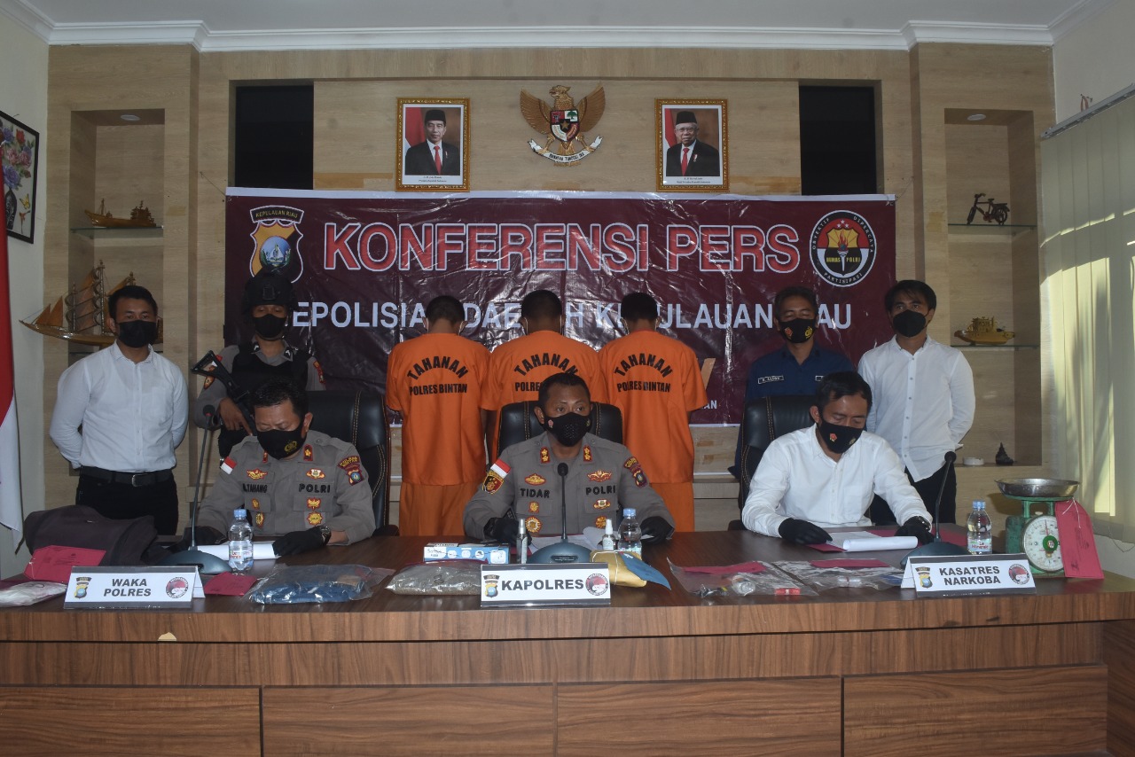 Saat ini ketiga orang laki-laki tersebut dilakukan penahanan, proses sidik dan pengembangan kasus guna mengungkap jaringan tindak pidana narkotika. Hal ini disampaikan Kapolres Bintan AKBP Tidar Wulung Dahono, S.H., S.I.K., M.H. saat konferensi pers, Rabu (30/3/2023)