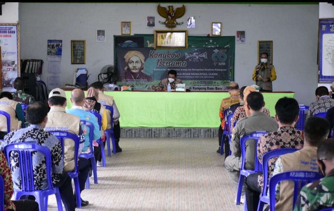Sekretaris Daerah Kabupaten Way Kanan, Saipul, S.Sos., M.IP, saat menyampaikan pemaparan langkah-langkah yang efektif dan efisien dalam menangani penyebaran dan dampak virus Covid-19, di Kampung Bumi Baru Kecamatan Blambangan Umpu, foto Humas Pemkab Way Kanan
