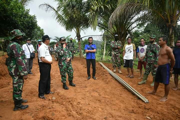 Letkol Kav. Jami’an,S.I.P turut didampingi Pasiter Kodim 1203/Ktp Kapten Inf. Yulianto, Pejabat Danramil 1203-05 Sungai Laur, Peltu. Kondori Serta Camat Sungai Laur Andreas Hardi, S.P,M.pd, guna pengecekan pelaksanaan pembangunan Ruas Jalan penghubung yang berlokasi di Desa Sepotong-Desa Merabu Jaya, Kecamatan Sungai Laur Kabupaten Ketapang, pada Kamis(28/05/2020).