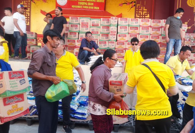 Pantauan dilapangan, ratusan penerima bantuan tampak memadati lapangan Vihara, baik laki maupun perempuan, tua maupun muda.