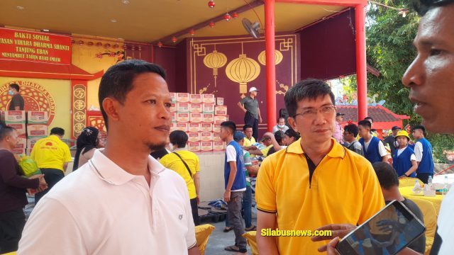 Plt. Camat Bintan Utara, Deni Irmat Susilo, S. Kom., dan Kuandy Kalsyim, wakil ketua yayasan Vihara Dharma Santi, Tanjunguban, saat memberikan keterangan, Minggu 08/01/2023 (Patar Sianipar)